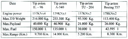 date comparative pe tipuri de avioane jet.: